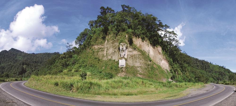 Es un motivo de curiosidad de quienes circulan por el lugar, pese a que está descuidado. La figura, que está a 30 metros del suelo, tiene 20 metros de alto y sobresale en la punta de una loma que da hacia la curva de la vía. El rostro tiene dos cuernos que se elevan sobre la frente; la nariz puntiaguda, la boca, semiabierta, deja al descubierto dos colmillos. En la base está escrita la frase, en mayúsculas, «El poder brutal» Fue esculpida entre 1985 y 1987, por César Octaviano Cristóbal Buenaño Núñez, tractorista empleado del Ministerio de Obras Públicas. Este nació en Ambato y vivió en Santo Domingo de los Colorados, murió en 2001 a causa de leucemia.
